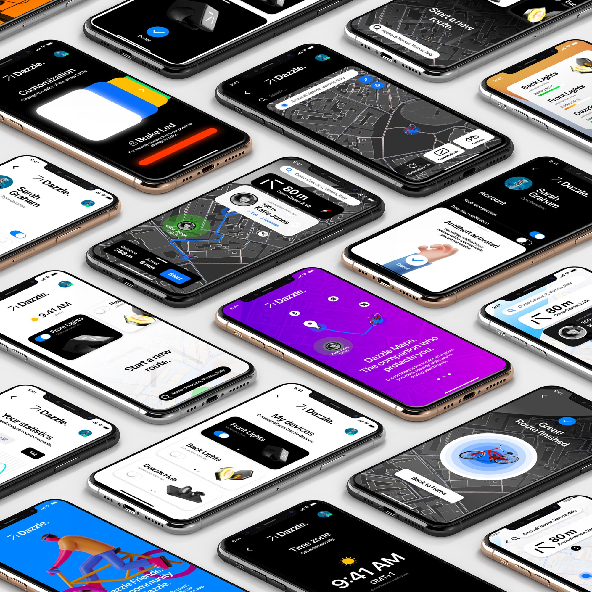Dazzle Ecosystem was developed with the aim of removing barriers that make urban cycling dangerous and distract cyclists. A project covering the entire design process: from brand to product. Developed with FLER Studio.