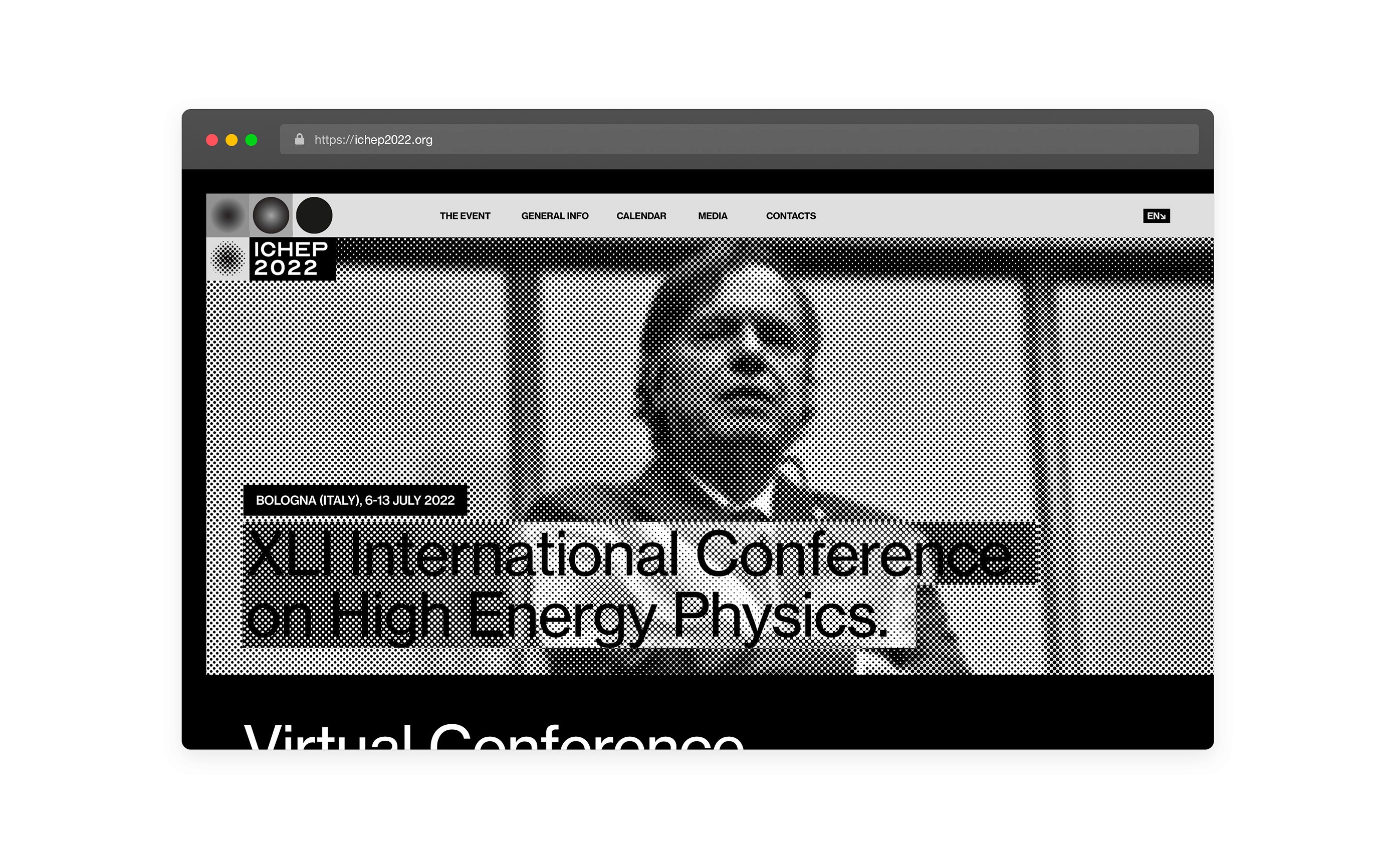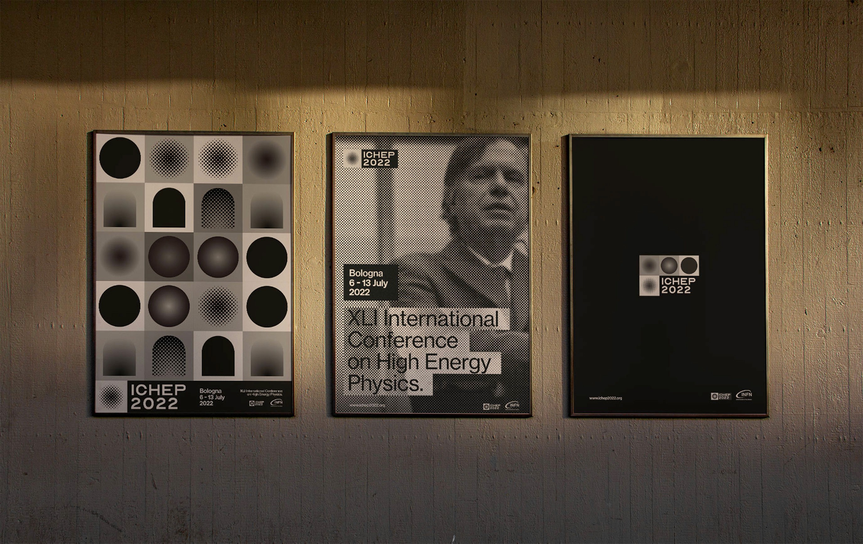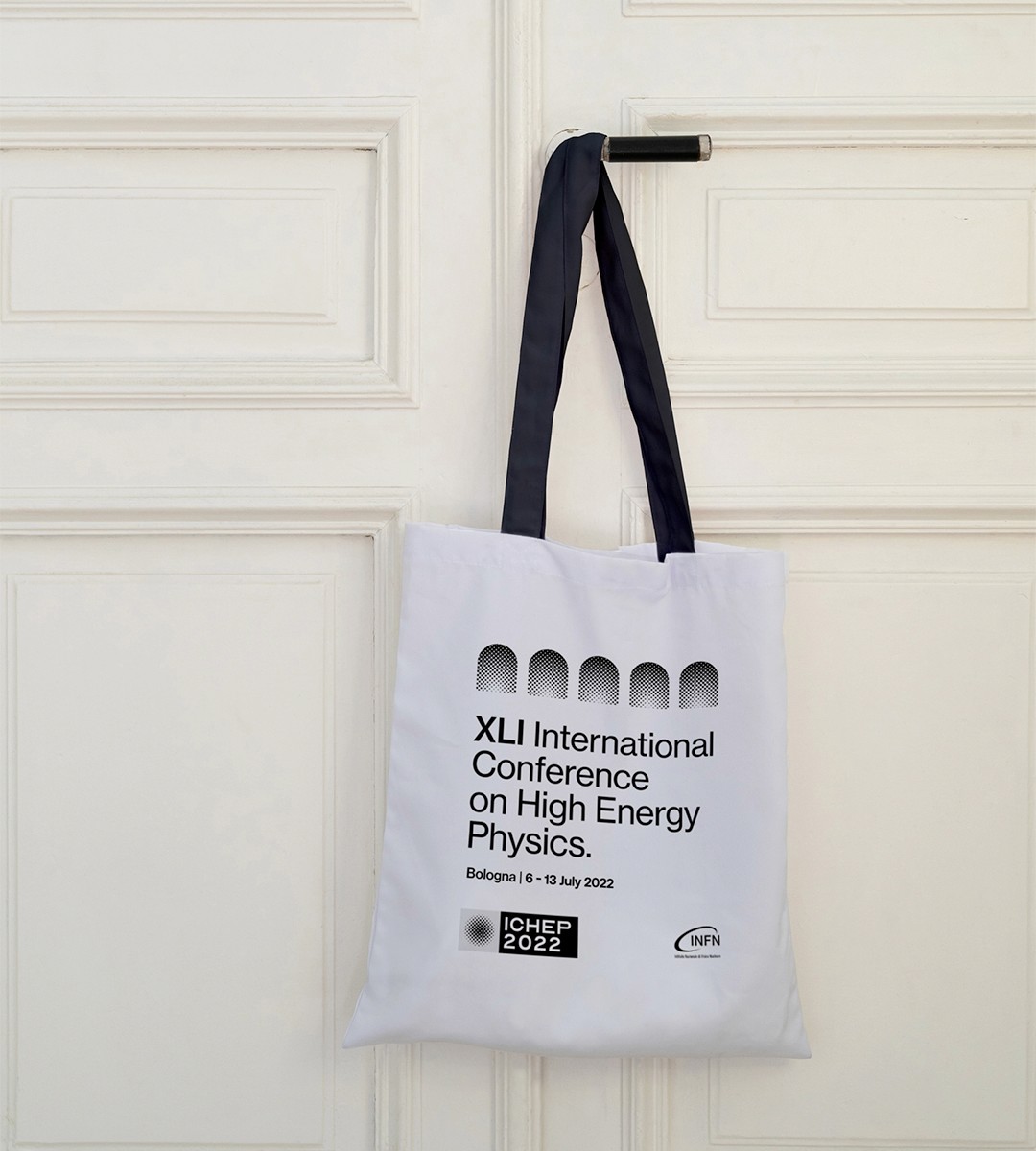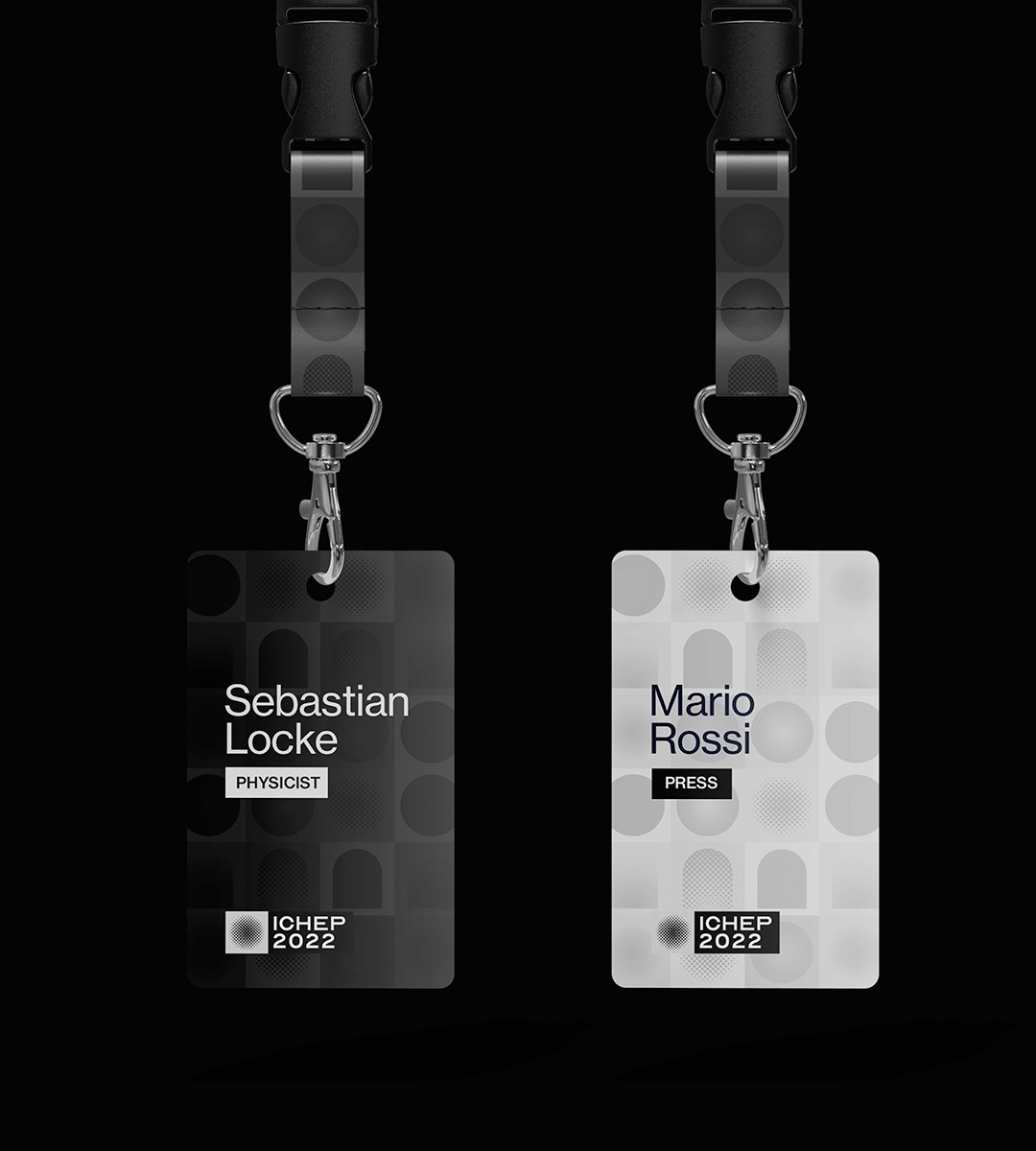 La proposta di marchio per “ICHEP2022-International Conference on High Energy Physics” è stata progettata per contenere diversi elementi all'interno di una figura definita. Il logo è composto da un simbolo astratto (raffigurante una particella) mutabile e modulare.